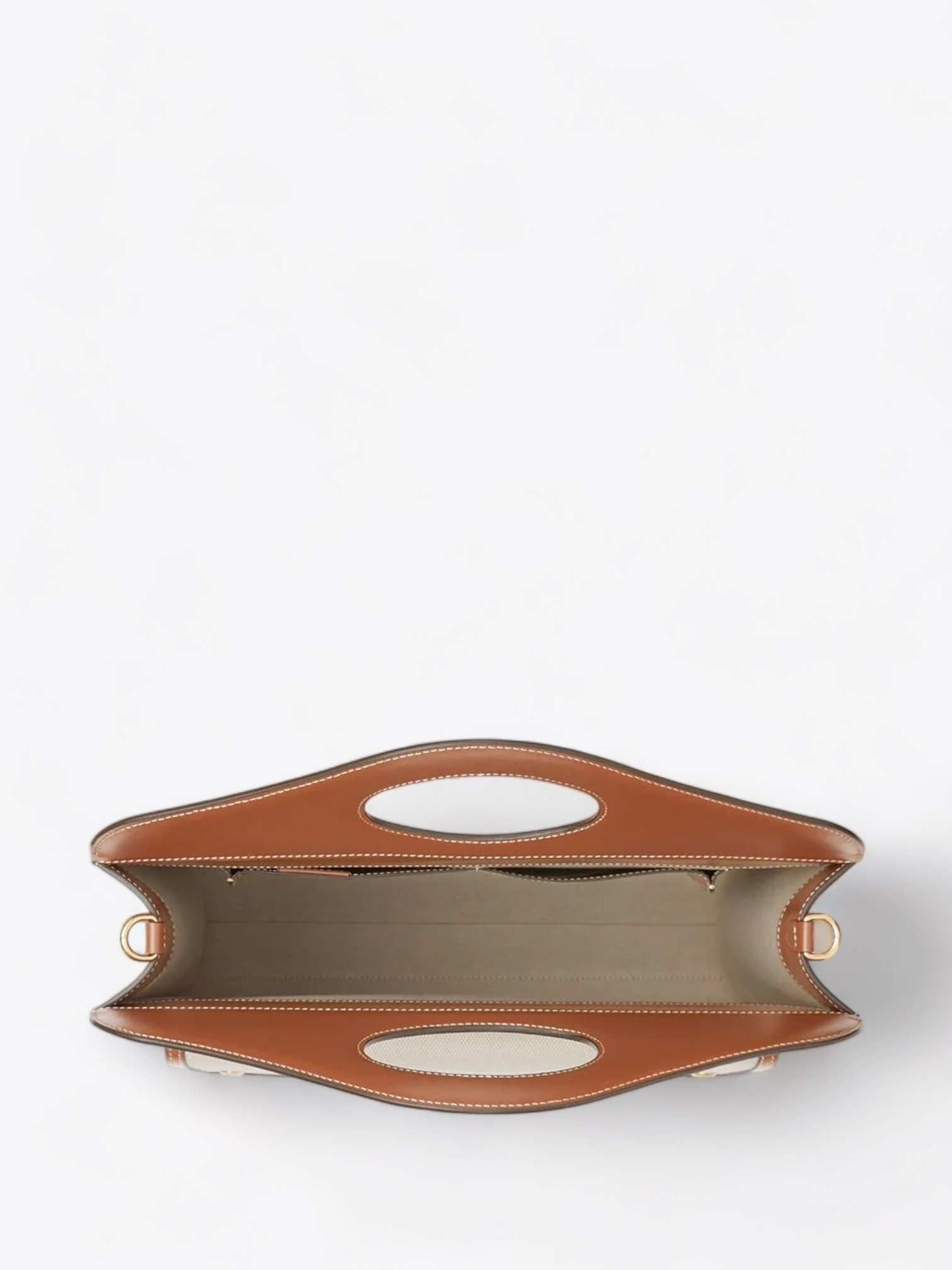 Entdecken Sie die Burberry Pocket-Tasche, eine Kreation, die die zeitlose Eleganz des Burberry-Hauses mit moderner Praktikabilität vereint. Dieses handwerkliche Meisterwerk, sorgfältig in Italien gefertigt, verkörpert diskreten Luxus. Seine robuste Baumwollleinwand in einem weichen, natürlichen Beige wird durch glattes, tiefbraunes Lederakzente aufgewertet, die einen markanten visuellen Kontrast und eine reiche Textur zum Anfassen bieten.