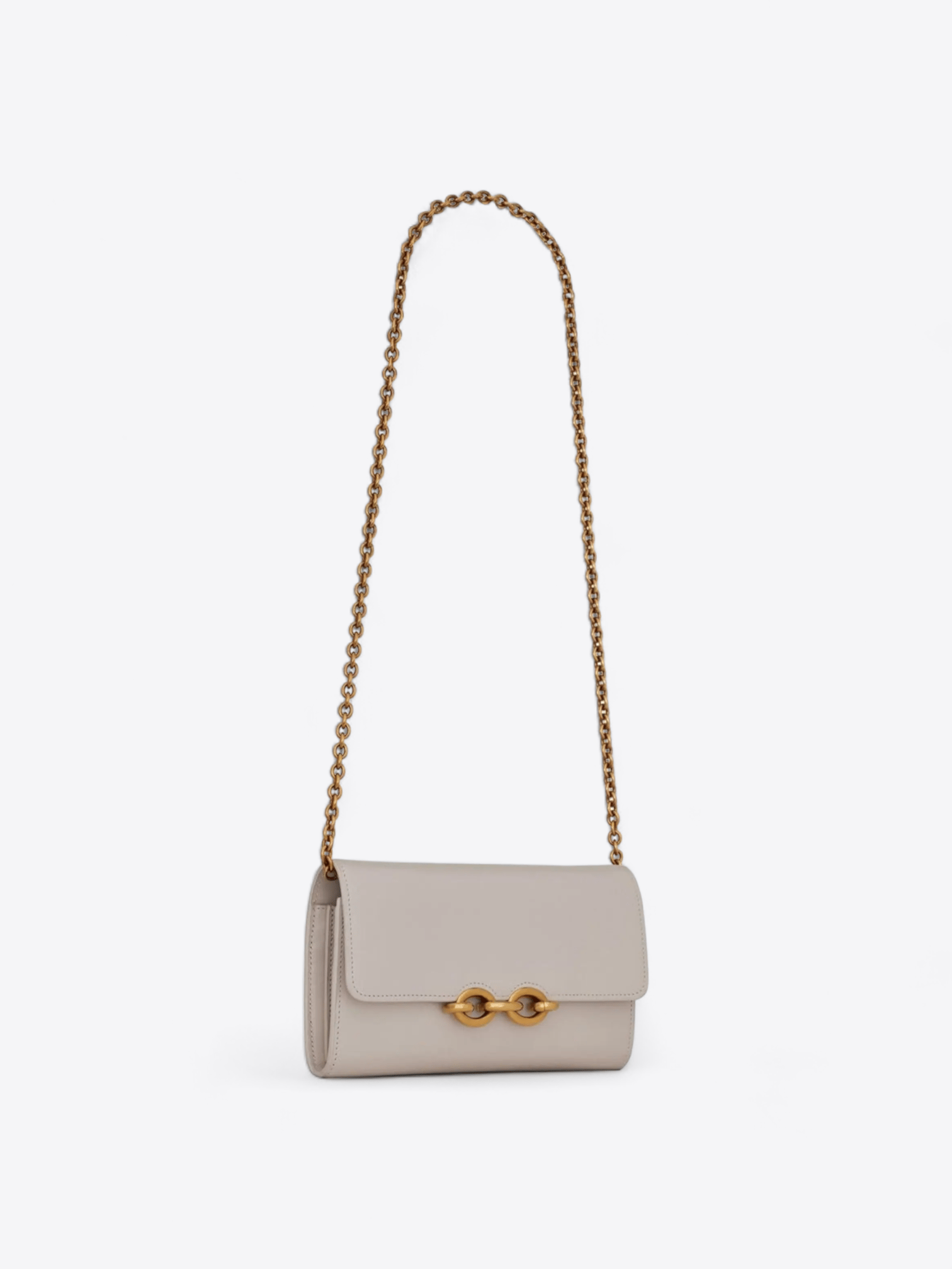 Verleihen Sie Ihrer Garderobe mit der Vermietung der weißen Le Maillon Umhängetasche von Saint Laurent eine Hauch von Raffinesse. Diese Tasche mit einer vorderen Klappe und einem magnetischen Verschluss in Form einer Gourmet-Kette verkörpert zeitlose Eleganz und Raffinesse.