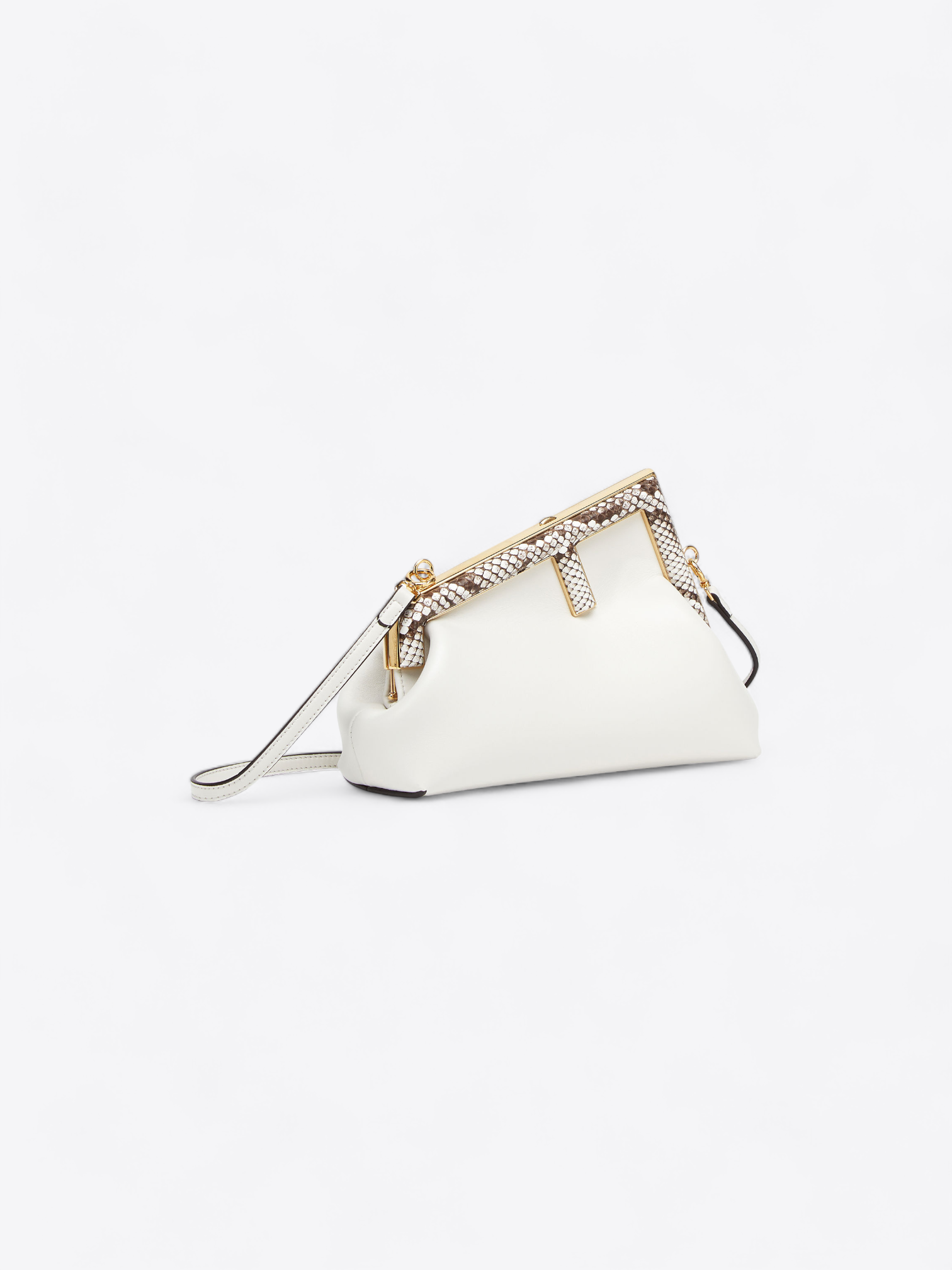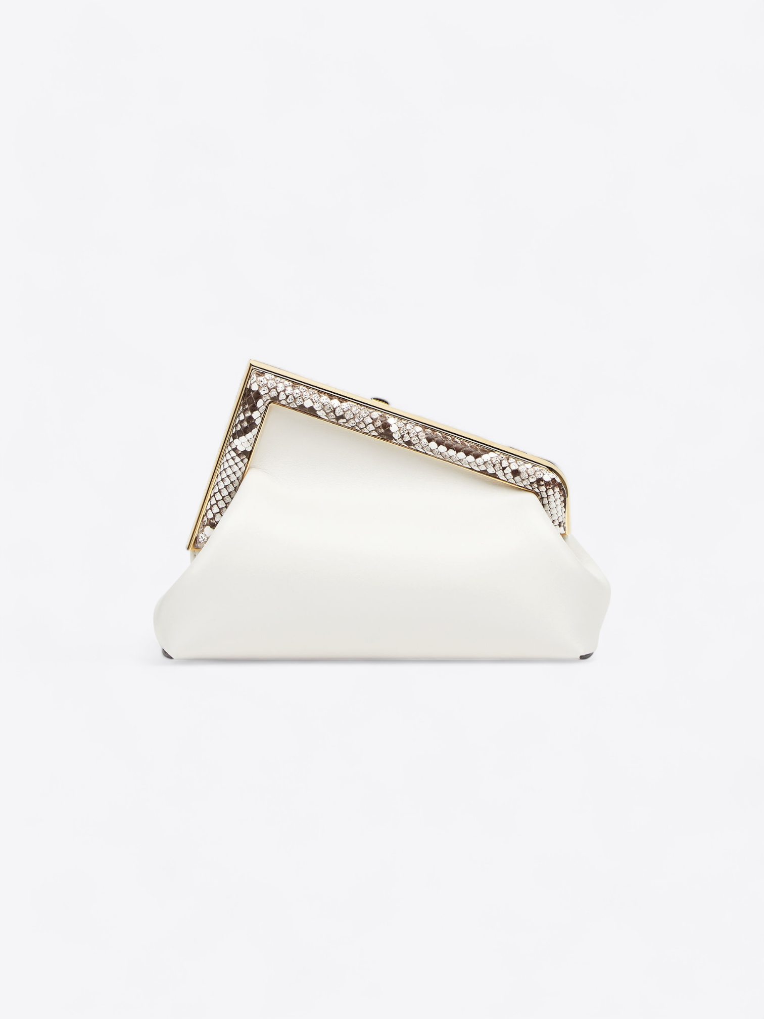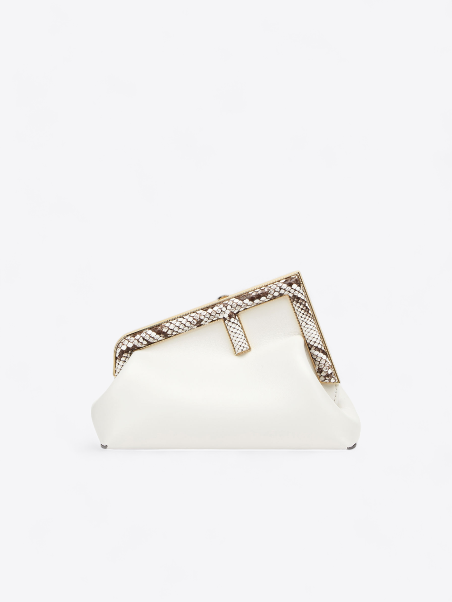 Entdecken Sie die Fendi First Tasche, ein Meisterwerk, das Eleganz und Luxus in reinster Form verkörpert, jetzt auf unserer Plattform für Luxustaschenverleih, welPop. Dieses Juwel der Lederware, sorgfältig in Italien gefertigt, besteht aus weißem Nappaleder von außergewöhnlicher Weichheit und Zartheit und verspricht ein äußerst angenehmes taktiles Erlebnis.