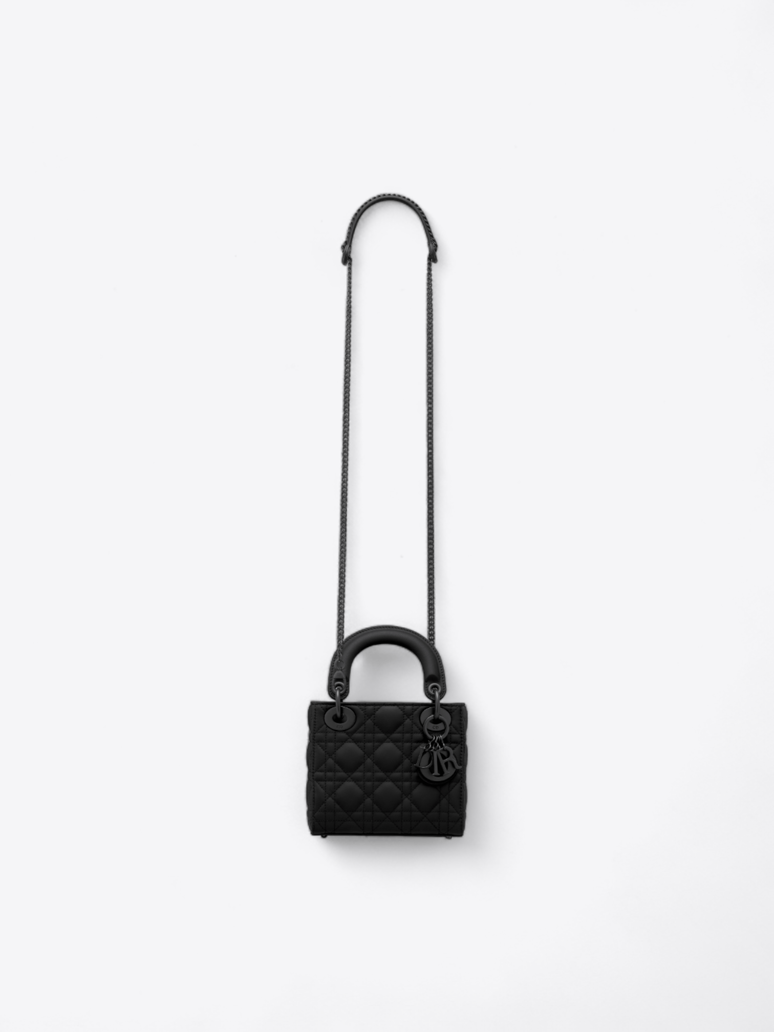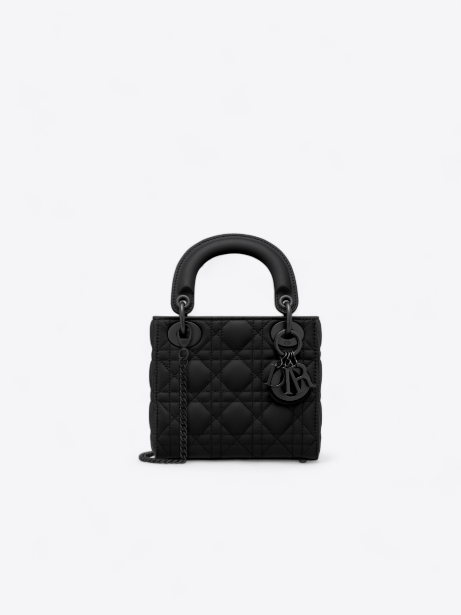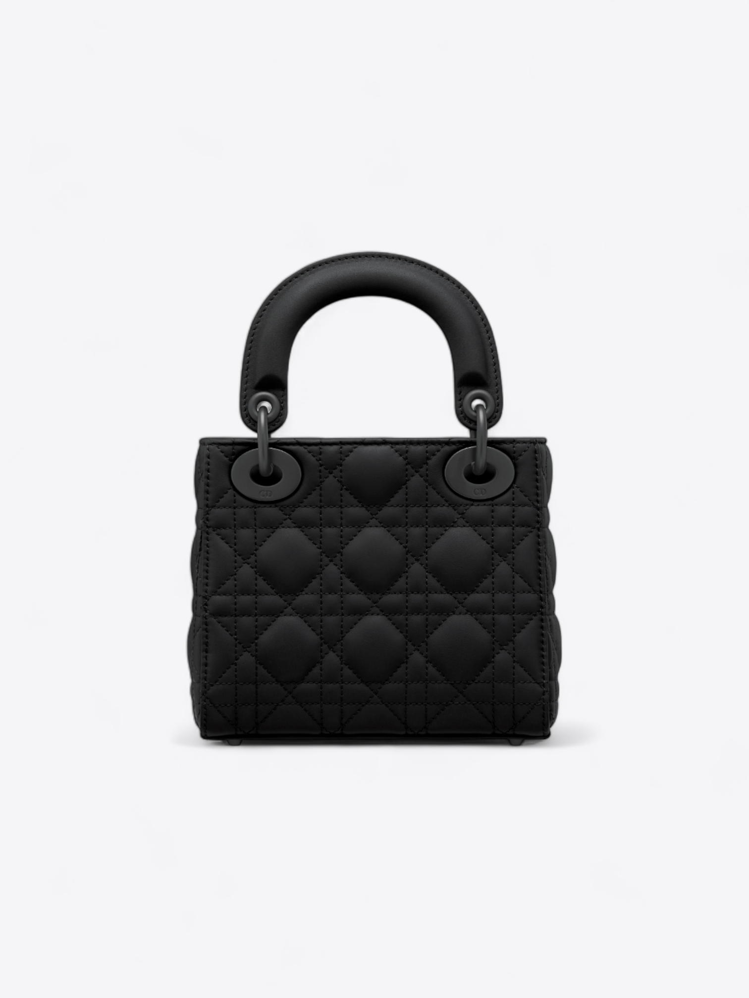 Mini Lady Dior Tasche aus ultramattem Kalbsleder in Schwarz
