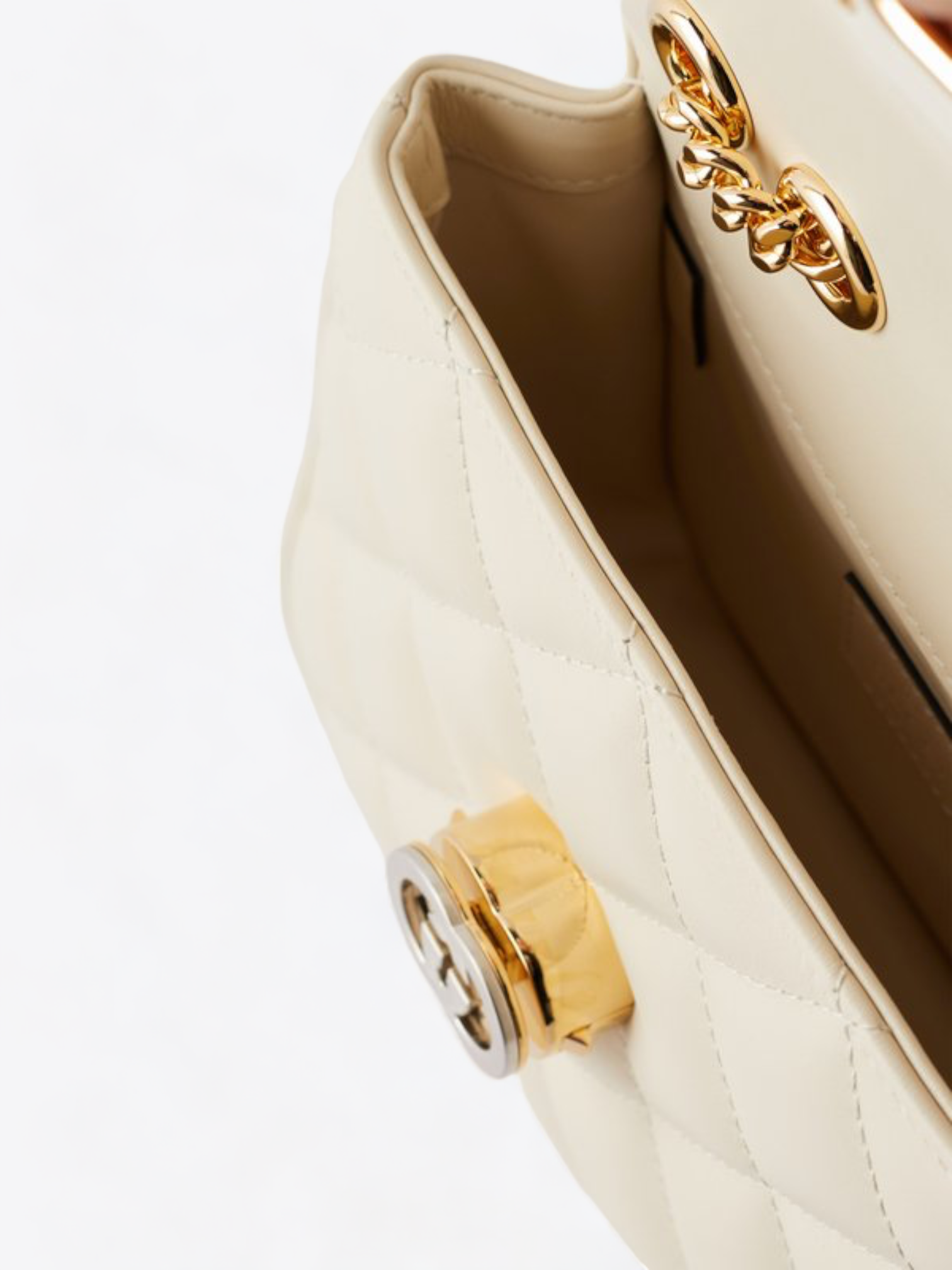 Textur und Farbe: Diese Tasche präsentiert sich in einem makellosen Weißton, perfekt für Anlässe, bei denen Sie einen eleganten und raffinierten Eindruck hinterlassen möchten. Das hochwertige Leder ist mit einem einzigartigen Steppmuster verziert, das quadratische und rautenförmige Motive bildet und der Tasche eine reiche und taktile Textur verleiht. Die feine Steppung und das weiche Leder bieten ein luxuriöses Gefühl bei der Berührung und gewährleisten gleichzeitig außergewöhnliche Robustheit und Haltbarkeit.