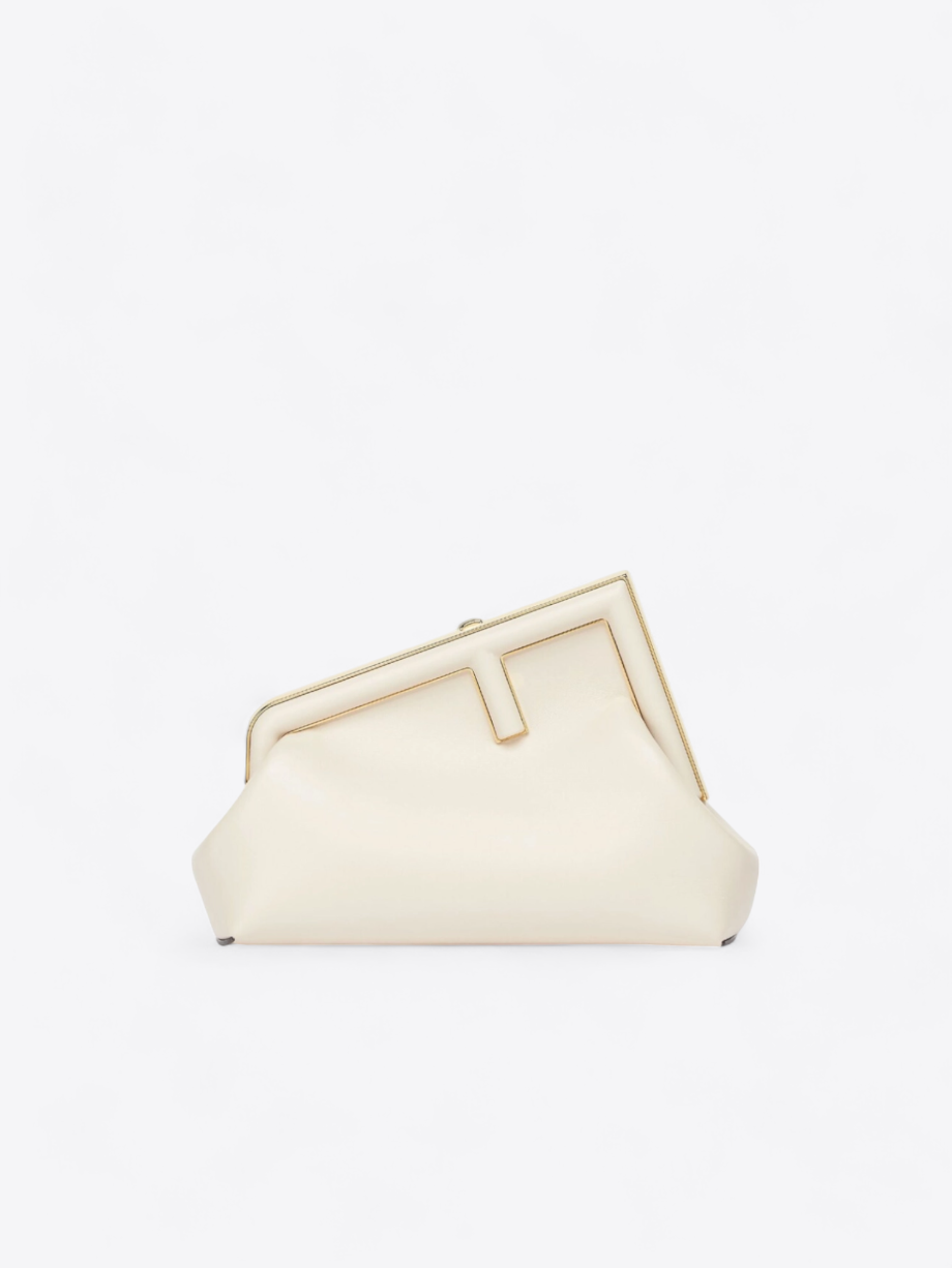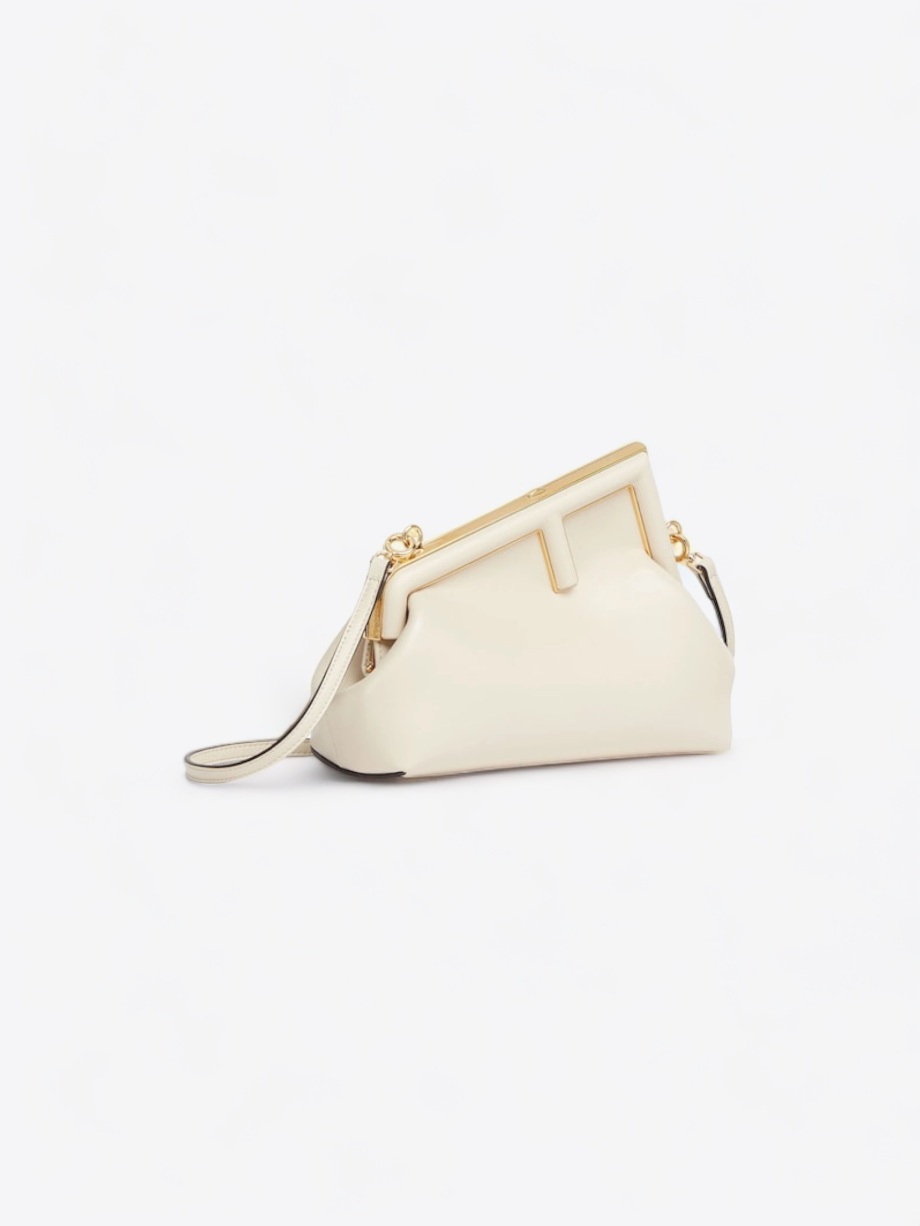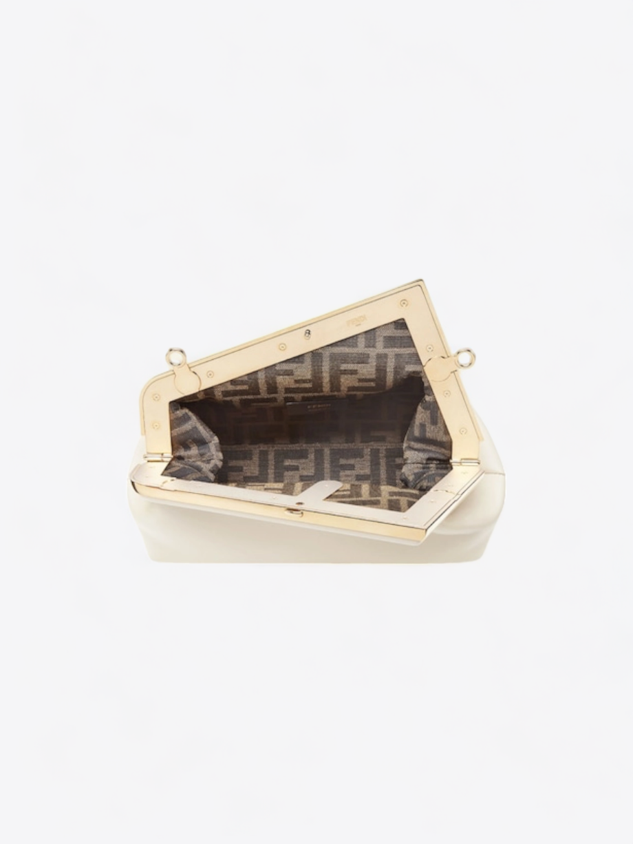 Die Fendi First Tasche, ein Meisterwerk der italienischen Luxusmarke Fendi, verkörpert Eleganz und Luxus. Sorgfältig aus weichem weißem Nappaleder gefertigt, besticht diese Tasche durch ihre samtige Haptik und glatte Textur, die zum Streicheln einlädt. Die strahlend weiße Farbe des Beutels, ein Symbol für Reinheit und Raffinesse, macht ihn zu einem vielseitigen Accessoire, das mit einer Vielzahl von Outfits und Stilen harmoniert.