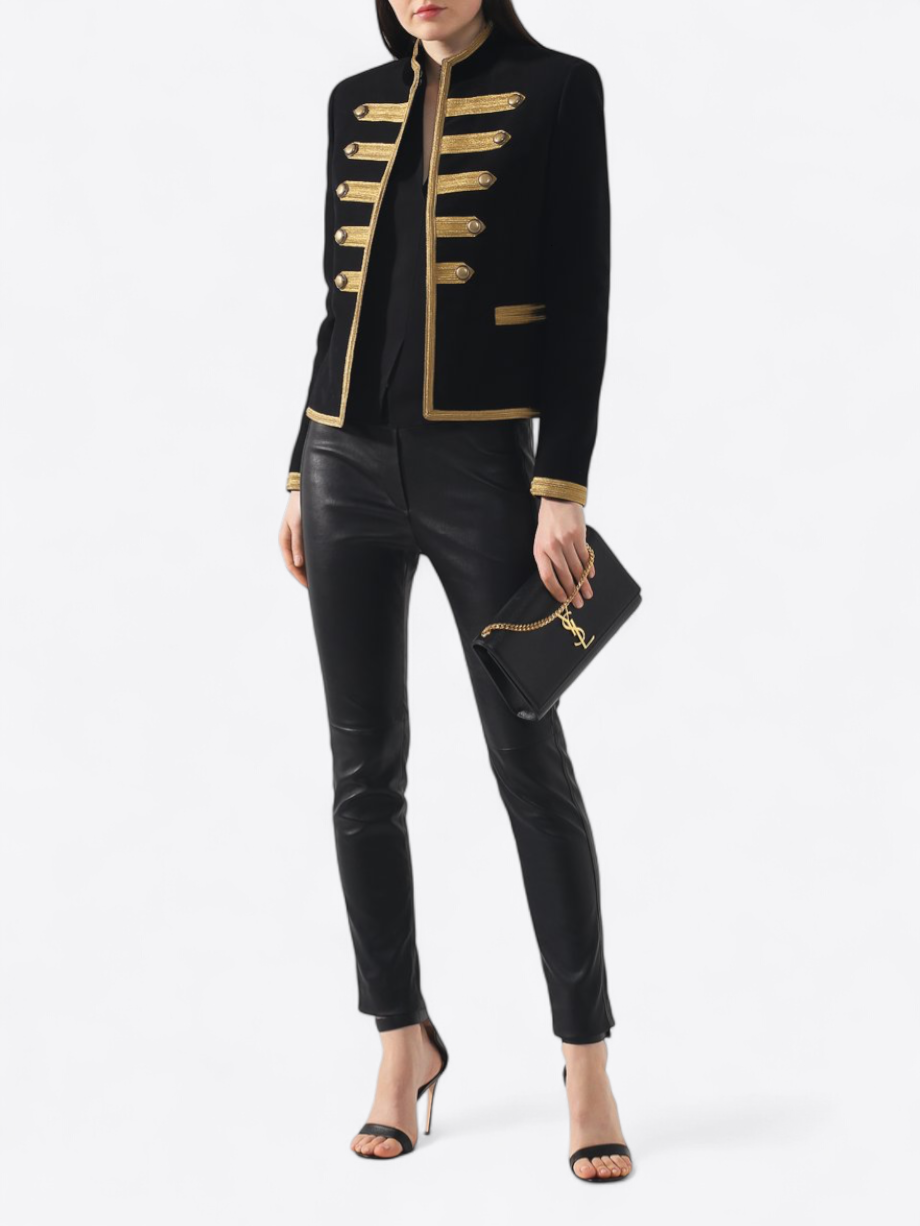 Die Loulou Toy verleiht Ihrem Outfit eine zeitlose Eleganz durch ihr Saint Laurent-Erbe, das an Loulou de la Falaise erinnert, ihr samtiges italienisches Leder, das alle Blicke auf sich zieht, und den starken Kontrast zwischen tiefem Schwarz und goldfarbenen Details.