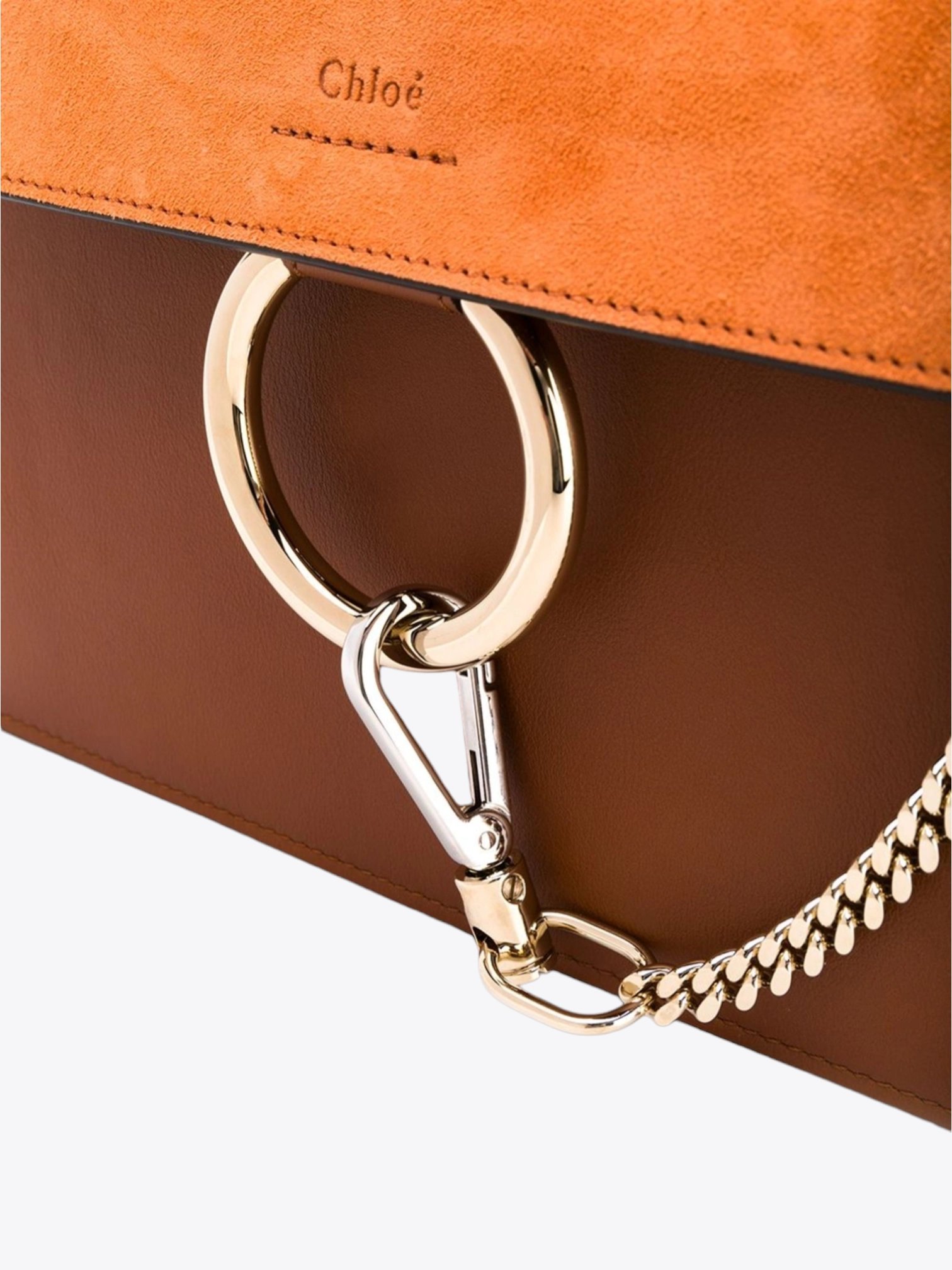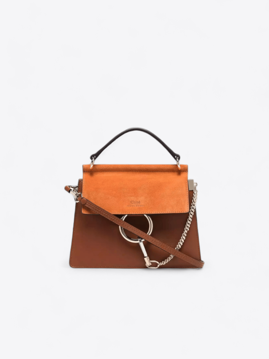 Die Faye-Tasche von Chloé, die bei welPop zur Miete erhältlich ist, ist ein ikonisches Stück, das Eleganz und Raffinesse verkörpert. Diese Schultertasche im Miniaturformat, inspiriert von den 1970er Jahren, ist eine perfekte Verschmelzung von Vintage-Erbe und Modernität. Sorgfältig gefertigt, präsentiert sie eine Oberfläche aus glattem Kalbsleder und Veloursleder, die eine weiche und luxuriöse Haptik bietet. Die Nuancen von Tabakbraun und Burnt Orange verleihen dieser Tasche eine Wärme und Farbtiefe, die sich problemlos mit einer Vielzahl von Outfits und Accessoires kombinieren lassen.