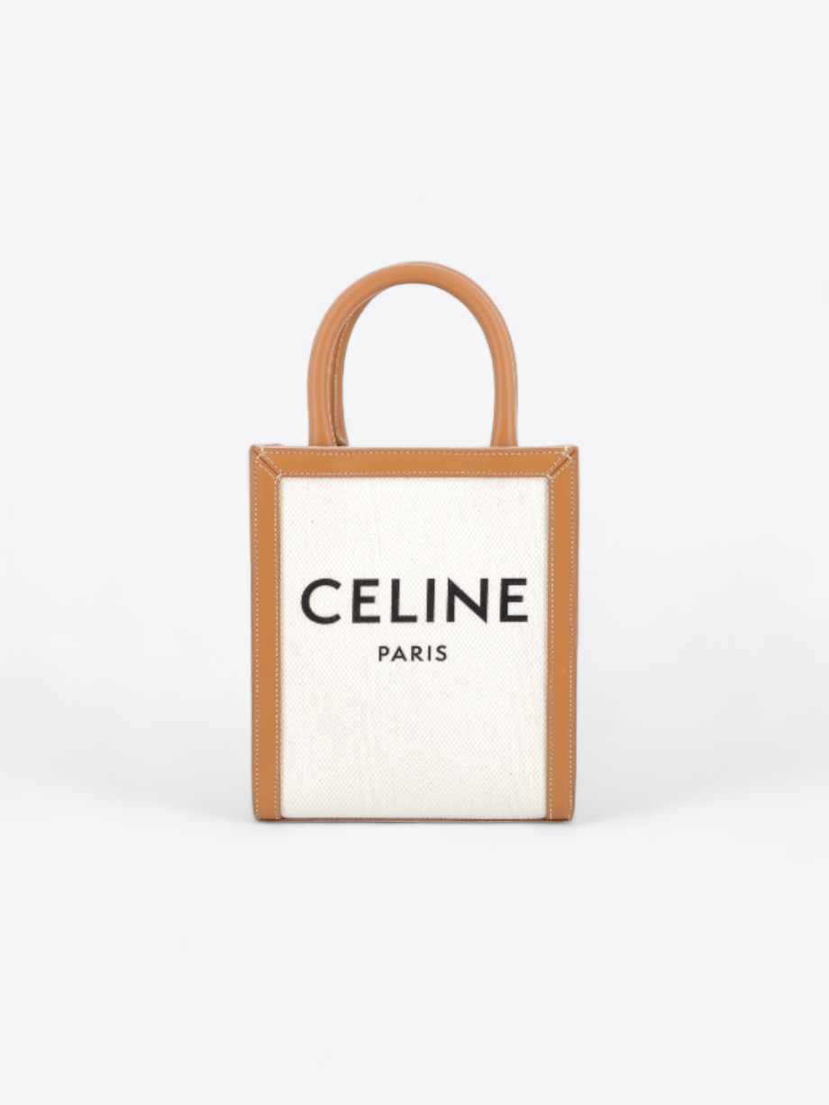 Die Celine Cabas Celine Vertical Mini Tasche ist die perfekte Balance zwischen modernem Stil und zeitloser Eleganz. Die sorgfältig gefertigte Tasche kombiniert bedrucktes Canvas mit dem markanten Celine-Logo mit zartem Kalbsleder und schafft so eine einzigartige visuelle Harmonie.