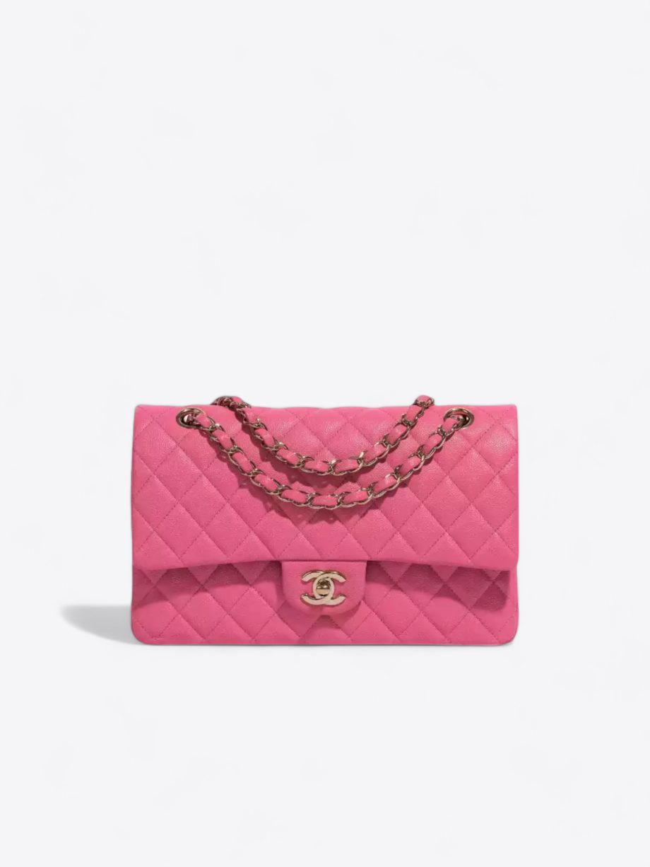 Die Abmessungen dieser Chanel-Tasche (16 cm Höhe, 25 cm Breite und 6 cm Tiefe) sind für optimale Funktionalität ohne Kompromisse bei der Eleganz durchdacht. Der 41 cm lange, verstellbare Riemen, verziert mit einer goldenen Kette, bietet die Möglichkeit, sie über der Schulter oder quer über den Körper zu tragen und sich so Ihrem Stil und Ihren Bedürfnissen anzupassen.