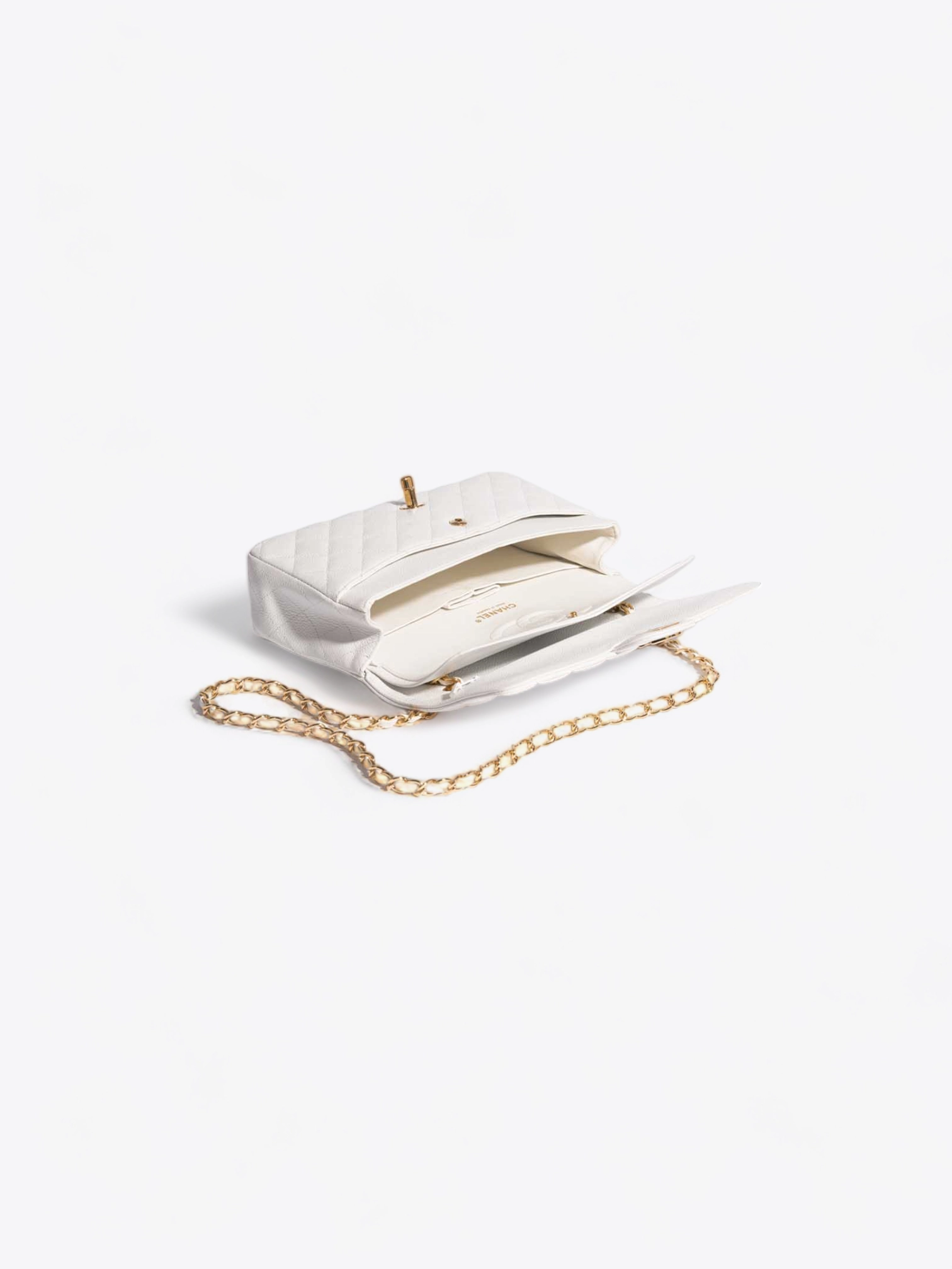 Reservieren Sie jetzt Ihren Luxusmoment mit der klassischen Chanel-Tasche aus weißem genarbtem Kalbsleder auf welPop und lassen Sie sich in eine Welt entführen, in der Eleganz und Raffinesse in greifbarer Nähe liegen. Ihr Sommer verspricht unvergesslich zu werden mit diesem ikonischen Accessoire, das zweifellos Blicke auf sich ziehen und Bewunderung hervorrufen wird.
