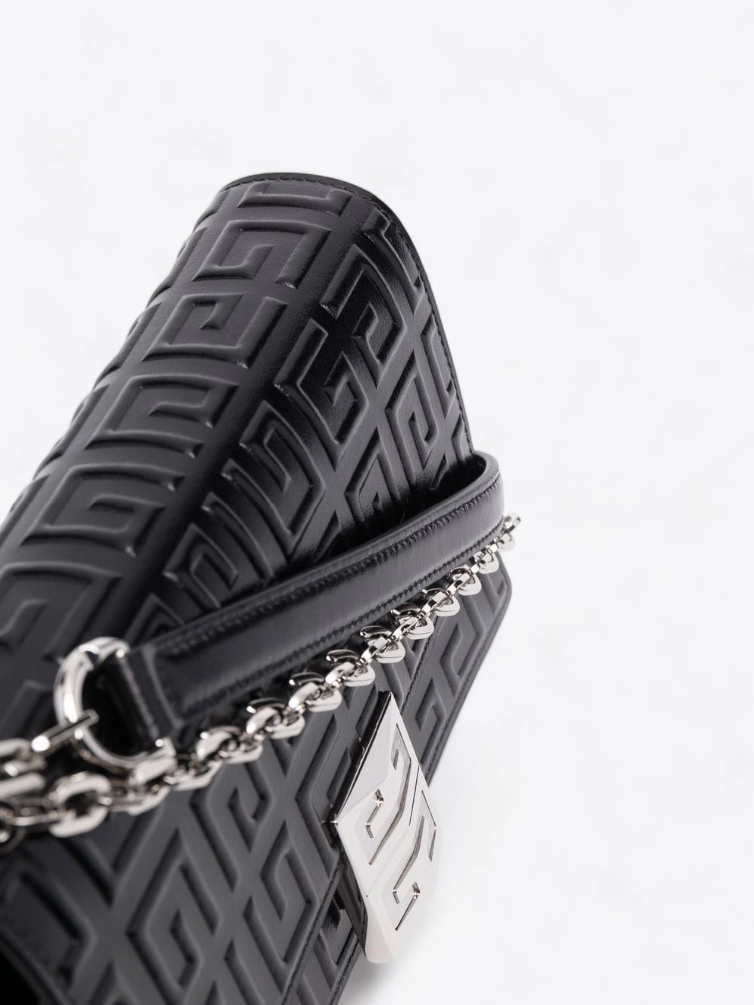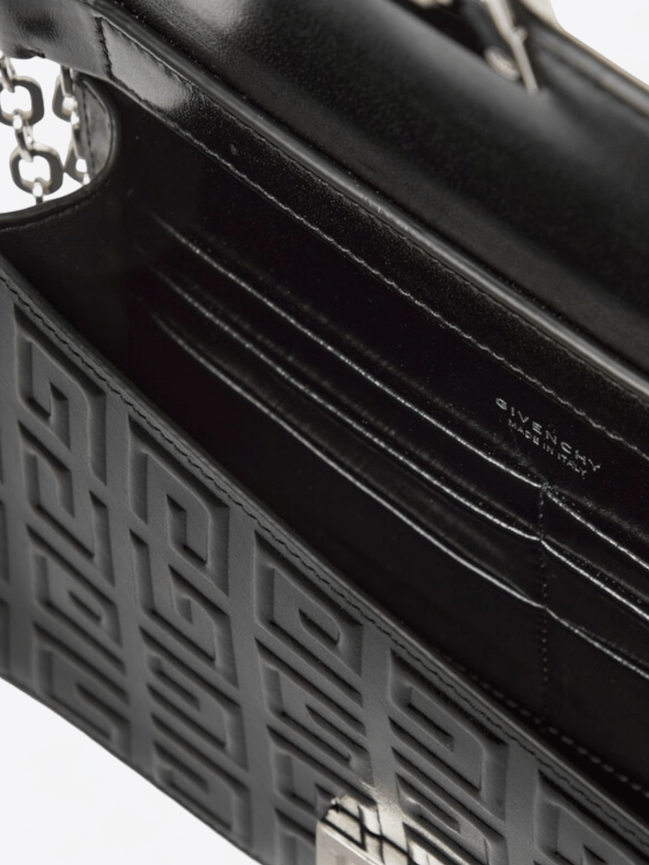 Der silberne Ketten-Schultergurt, verziert mit G-förmigen Gliedern, ist eine Hommage an das Erbe des Hauses Givenchy und seinen derzeitigen künstlerischen Leiter, Matthew M. Williams. Dieser metallische Akzent verleiht der Tasche einen luxuriösen und zeitgemäßen Touch und macht sie sofort erkennbar.