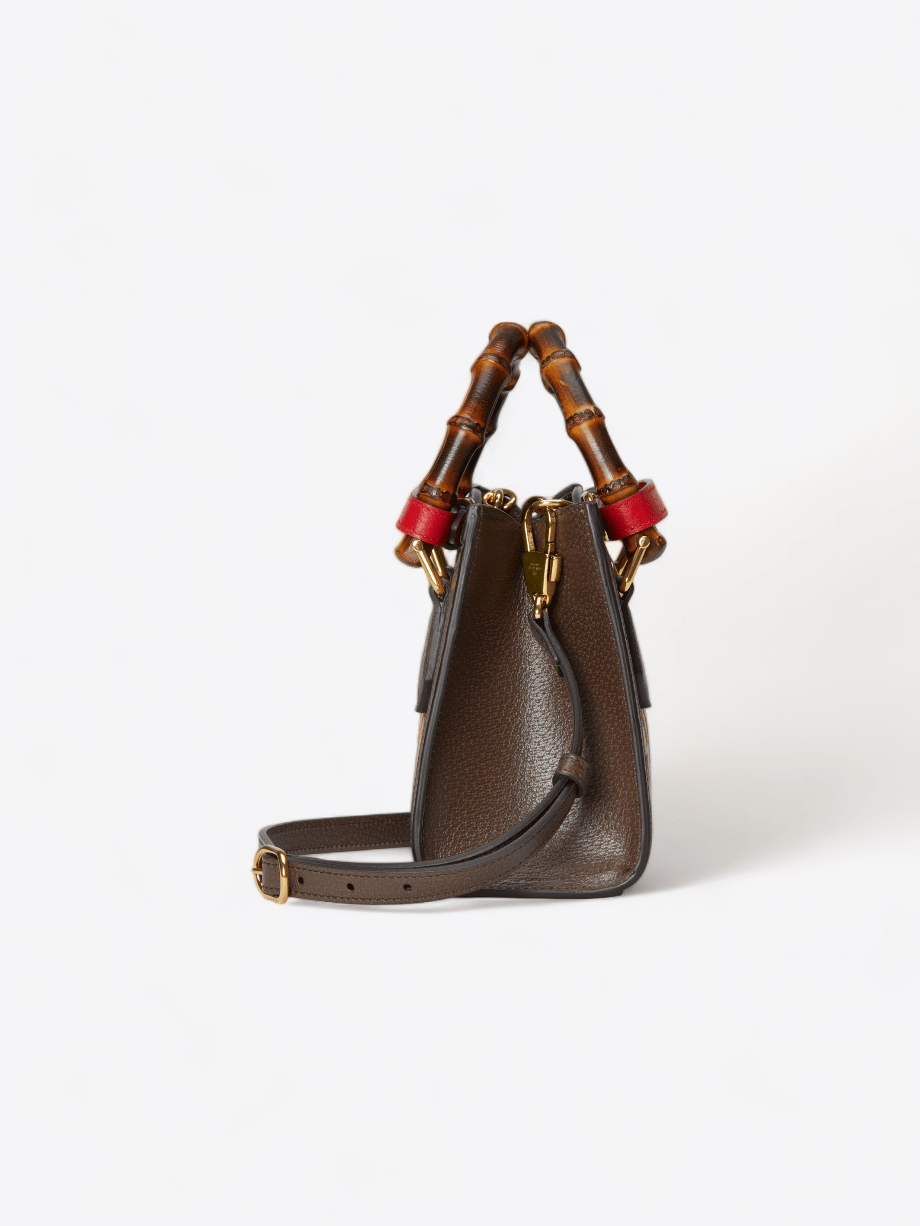Die Mini-Tasche Gucci Diana ist ein Schlüsselstück der Aria-Kollektion, eine Feier der Eleganz und Handwerkskunst des Hauses Gucci. Diese Tasche verkörpert Luxus und Funktionalität und ist für Modeliebhaberinnen konzipiert, die keine Kompromisse bei Qualität und Stil eingehen.