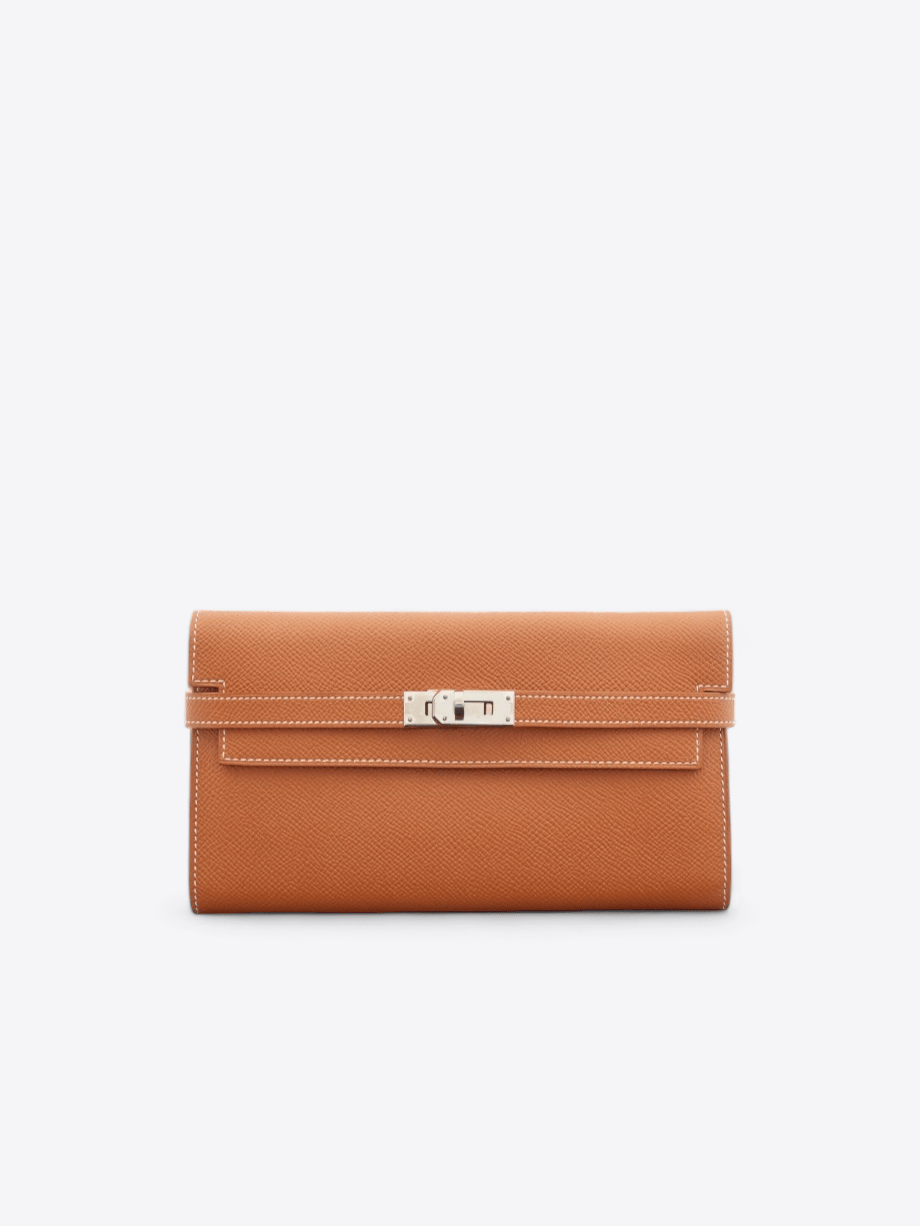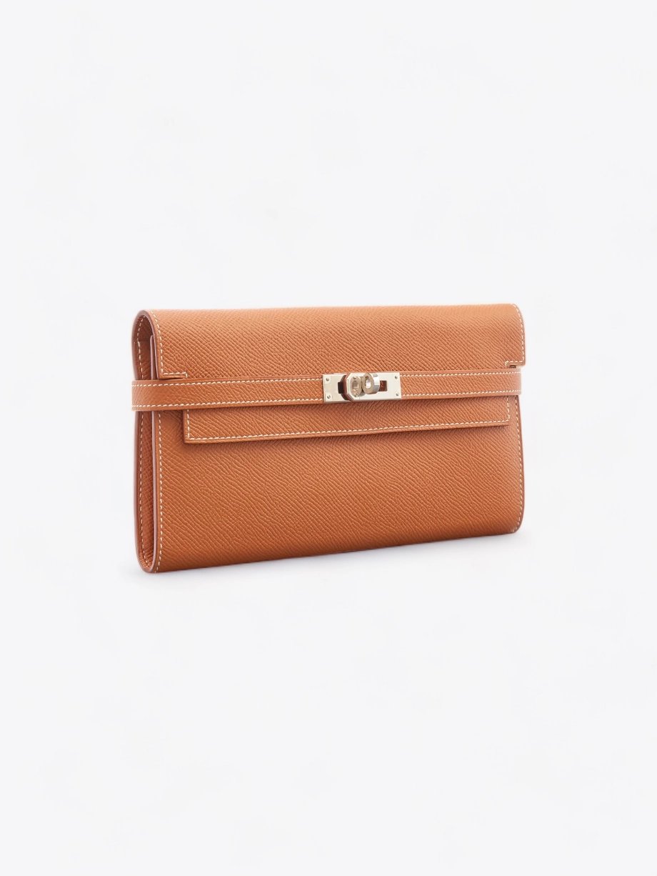 Umarmen Sie zeitlose Eleganz mit der Hermès Kelly Long Wallet, einem Symbol für diskreten Luxus und raffinierte Handwerkskunst. Dieses Meisterwerk aus goldfarbenem Epsom-Leder, das für seine feine Textur und seine Widerstandsfähigkeit gegen tägliche Abnutzung bekannt ist, zeichnet sich durch seine schlanke Silhouette und seine ausgeklügelte Funktionalität aus.