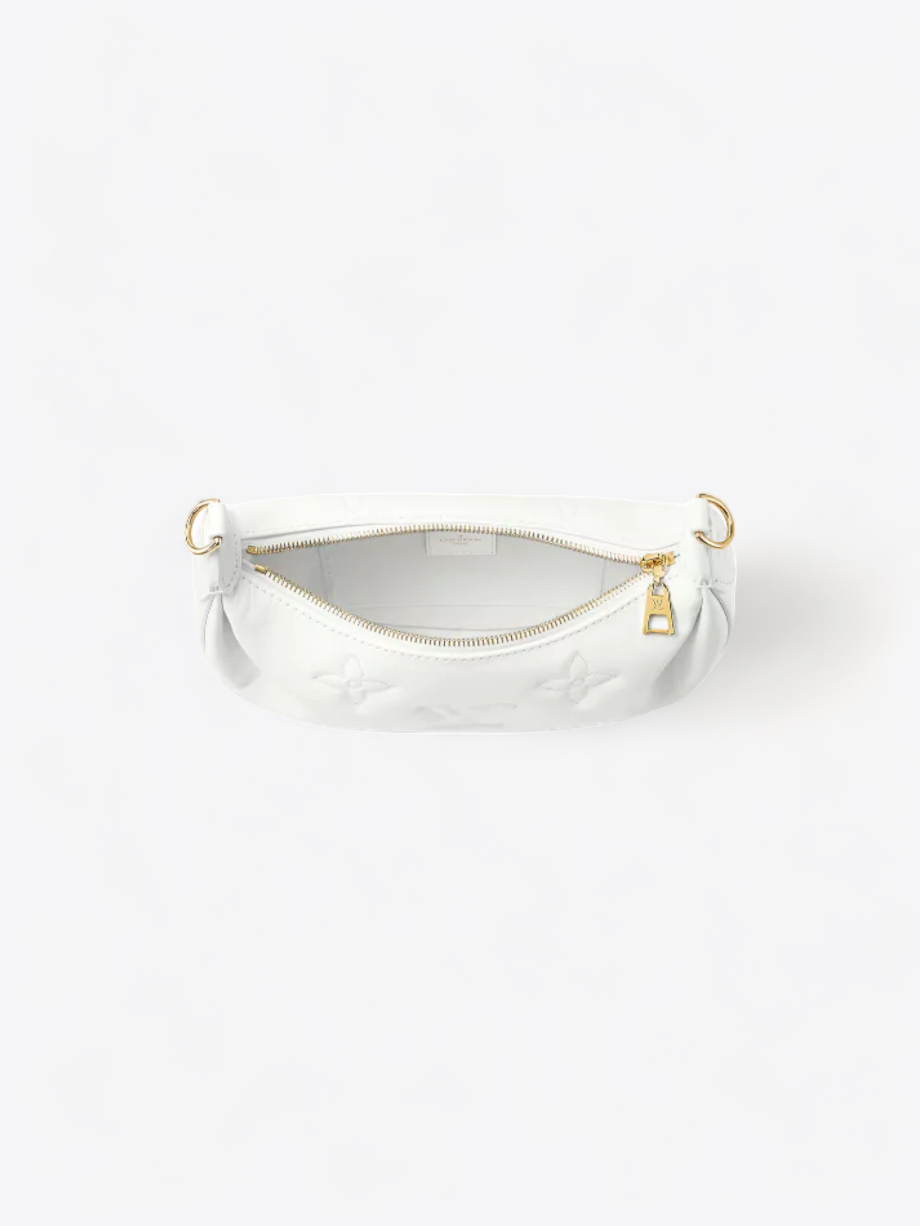 Die Louis Vuitton Over The Moon Tasche, erhältlich auf unserer Mietplattform welPop, verkörpert Luxus und Raffinesse. Ausgestattet mit gestepptem Kalbsleder von unvergleichlicher Weichheit, zeichnet sich diese Tasche durch ihr ikonisches Monogramm-Muster aus, das reliefartig gestickt ist, um eine reiche Textur und ein eindrucksvolles Volumen zu erzeugen. Die makellos weiße Farbe der Tasche bietet eine perfekte Leinwand, um das ikonische Design und die goldenen Details, die mit Eleganz funkeln, hervorzuheben.