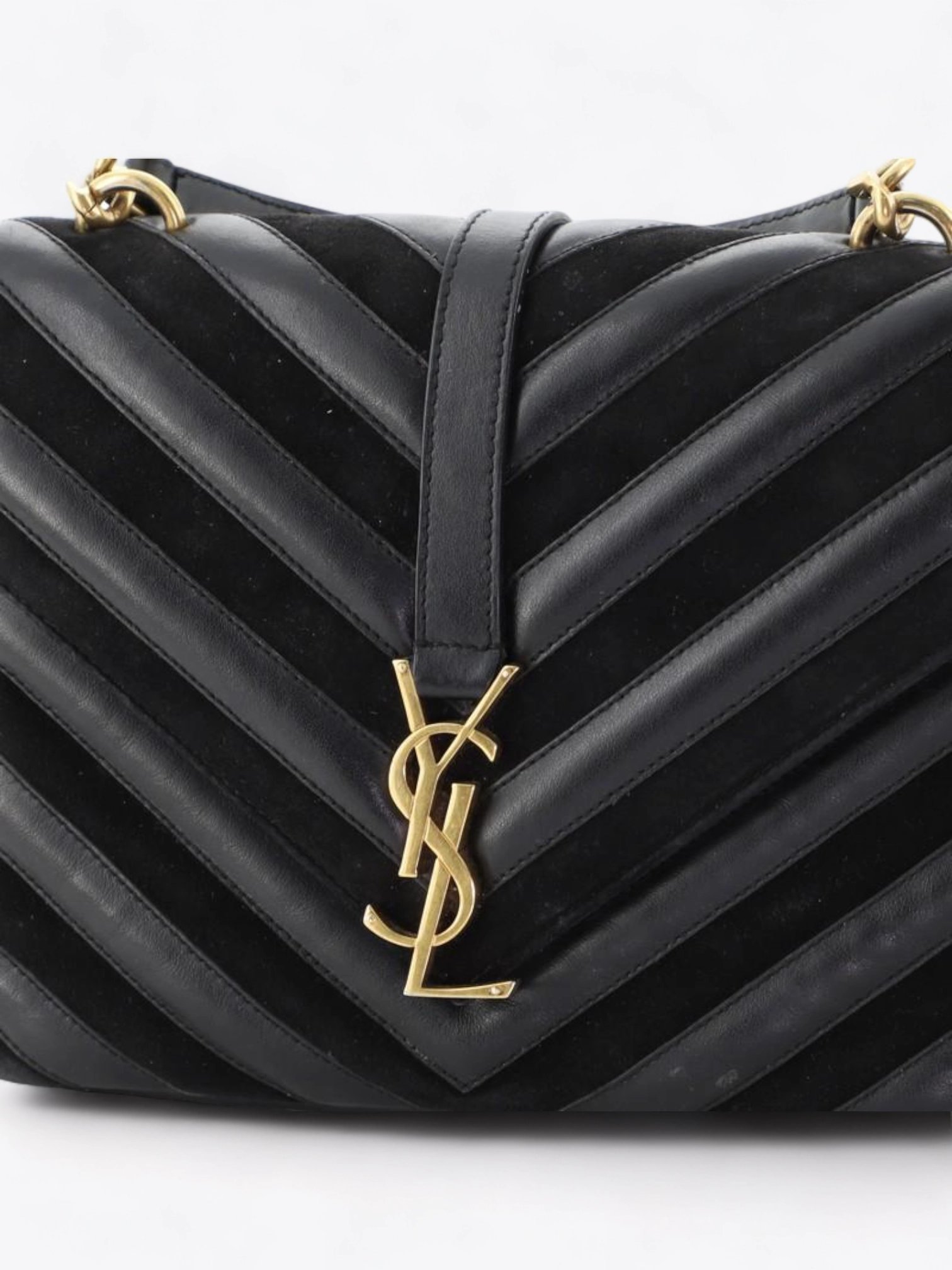 Für einen Tagesausflug kombinieren Sie die College-Tasche mit einer Skinny-Jeans, einer fließenden Bluse und Stiefeletten für einen lässig-eleganten Look. Für formellere Anlässe entscheiden Sie sich für ein kleines schwarzes Kleid, High Heels und goldene Schmuckstücke, um den Kettenriemen und die YSL-Plakette der Tasche widerzuspiegeln. Diese Tasche eignet sich perfekt für einen Abend in der Stadt, einen Cocktailabend oder sogar für ein geschäftliches Treffen, bei dem Eleganz gefragt ist.