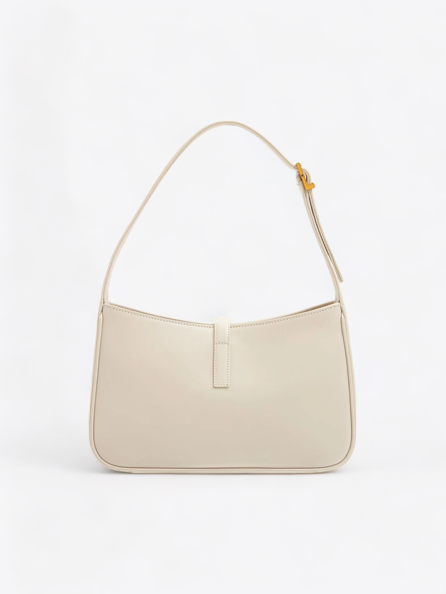 Het strakke ontwerp van “Le 5 à 7” wordt versterkt door de iconische YSL-sluiting in verguld metaal, een teken van discreet maar onmiskenbaar luxe. De verstelbare schouderband biedt draagflexibiliteit, zodat je hem elegant over de schouder kunt dragen of in de hand kunt houden voor een meer formele uitstraling.