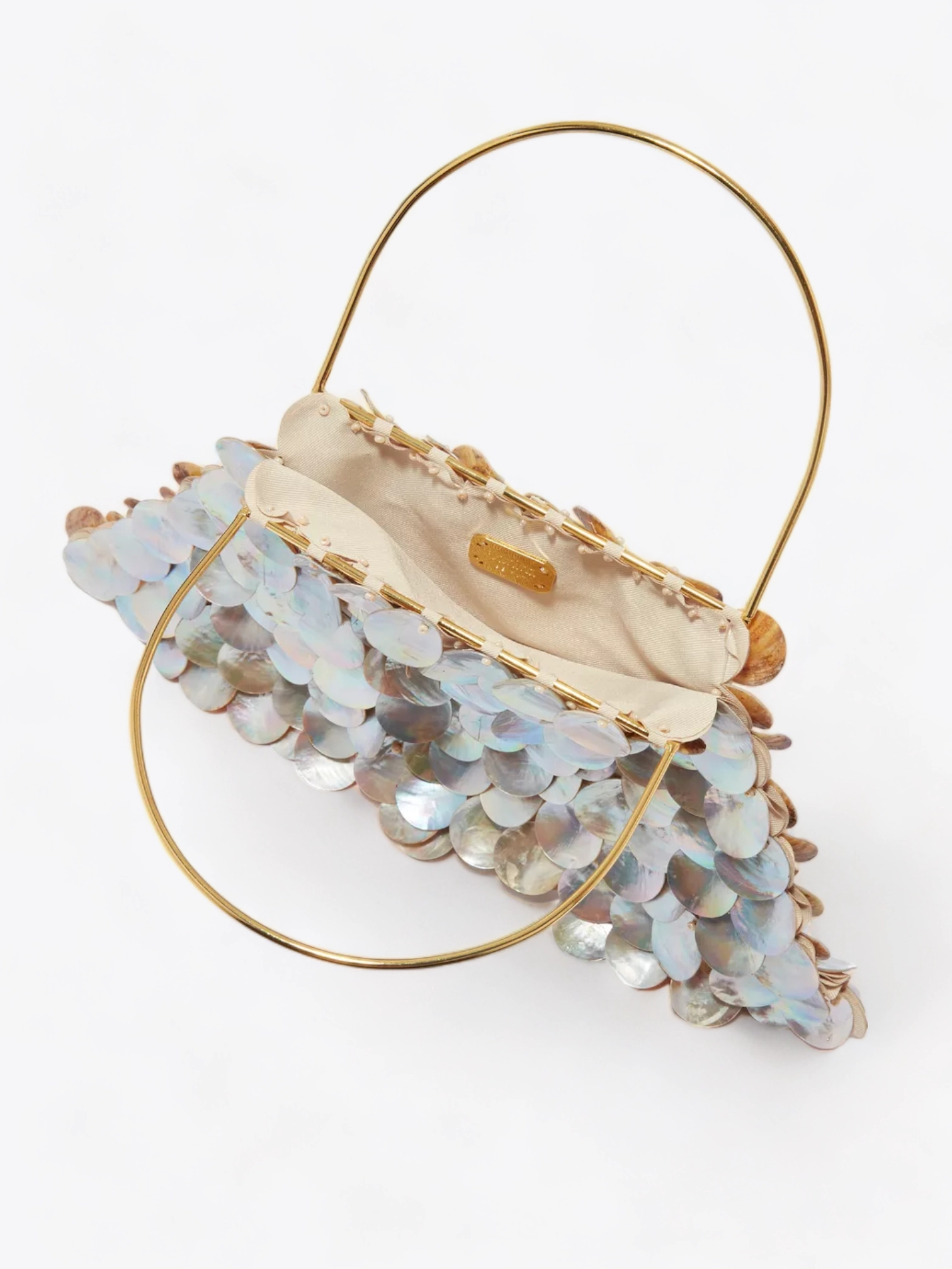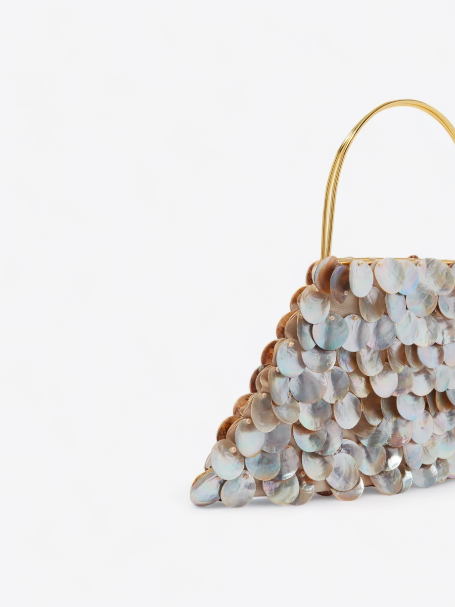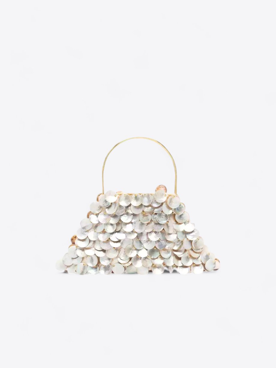 De natuurlijke kleur van het parelmoer, met zijn iriserende reflecties, varieert van wit tot lichtroze en zeegroen, waardoor de Celeste tas een chromatische veelzijdigheid krijgt die harmonieert met talloze outfits. De royale afmetingen van de tas (15 cm hoog, 32 cm breed, met een handvat van 10 cm) maken hem zowel praktisch als ruim, perfect voor het meenemen van de essentiële benodigdheden voor een avondje uit.
