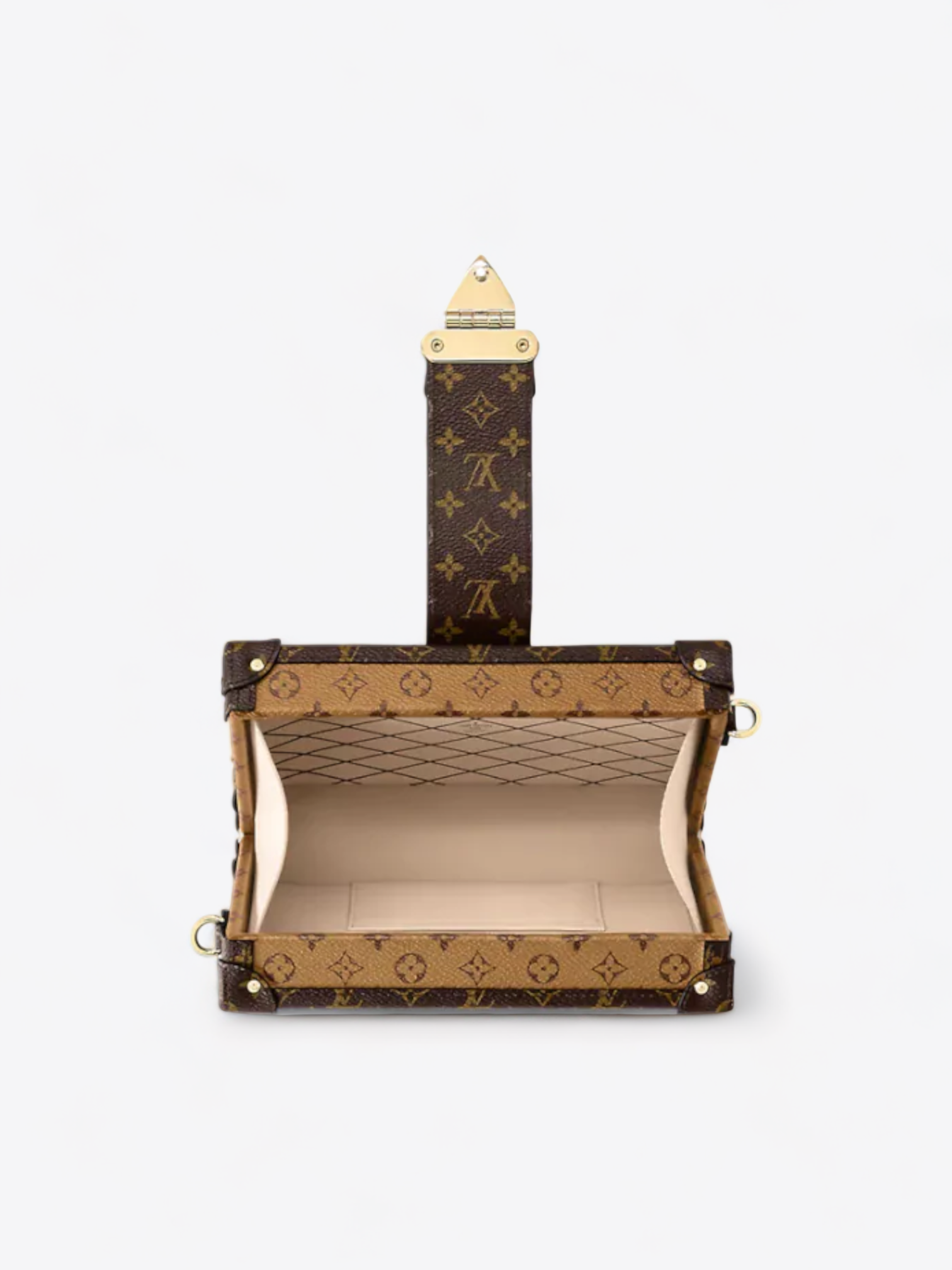 De gouden metalen afwerkingen, waaronder het iconische S-slot en de hoekverstevigingen, voegen een vleugje glamour en verfijning toe, waardoor deze tas een perfecte keuze is voor galagelegenheden of eersteklas avonden. De voering van schapenvacht, bedrukt met een klassiek patroon, biedt een luxueuze tactiele ervaring bij elke opening van de tas, terwijl de afwerking van soepel kalfsleer het engagement van Louis Vuitton voor materialen van de hoogste kwaliteit benadrukt.