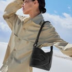 De karakteristieke envelopvorm opent met een magnetische sluiting, vergezeld door een minimalistisch kaartvakje binnenin. De verstelbare schouderriem maakt zowel hand- als schouderdragen mogelijk, soepel passend onder de arm.