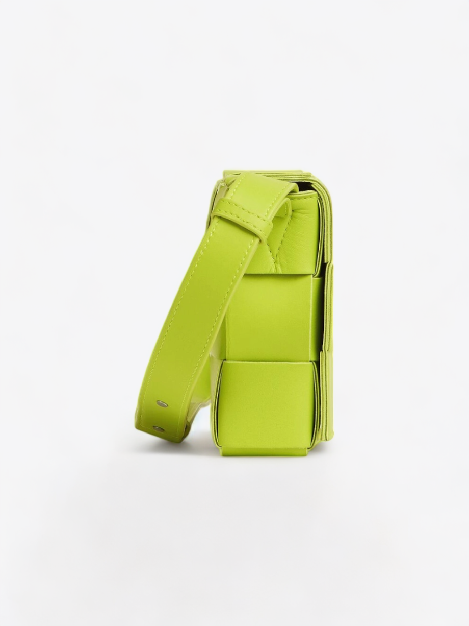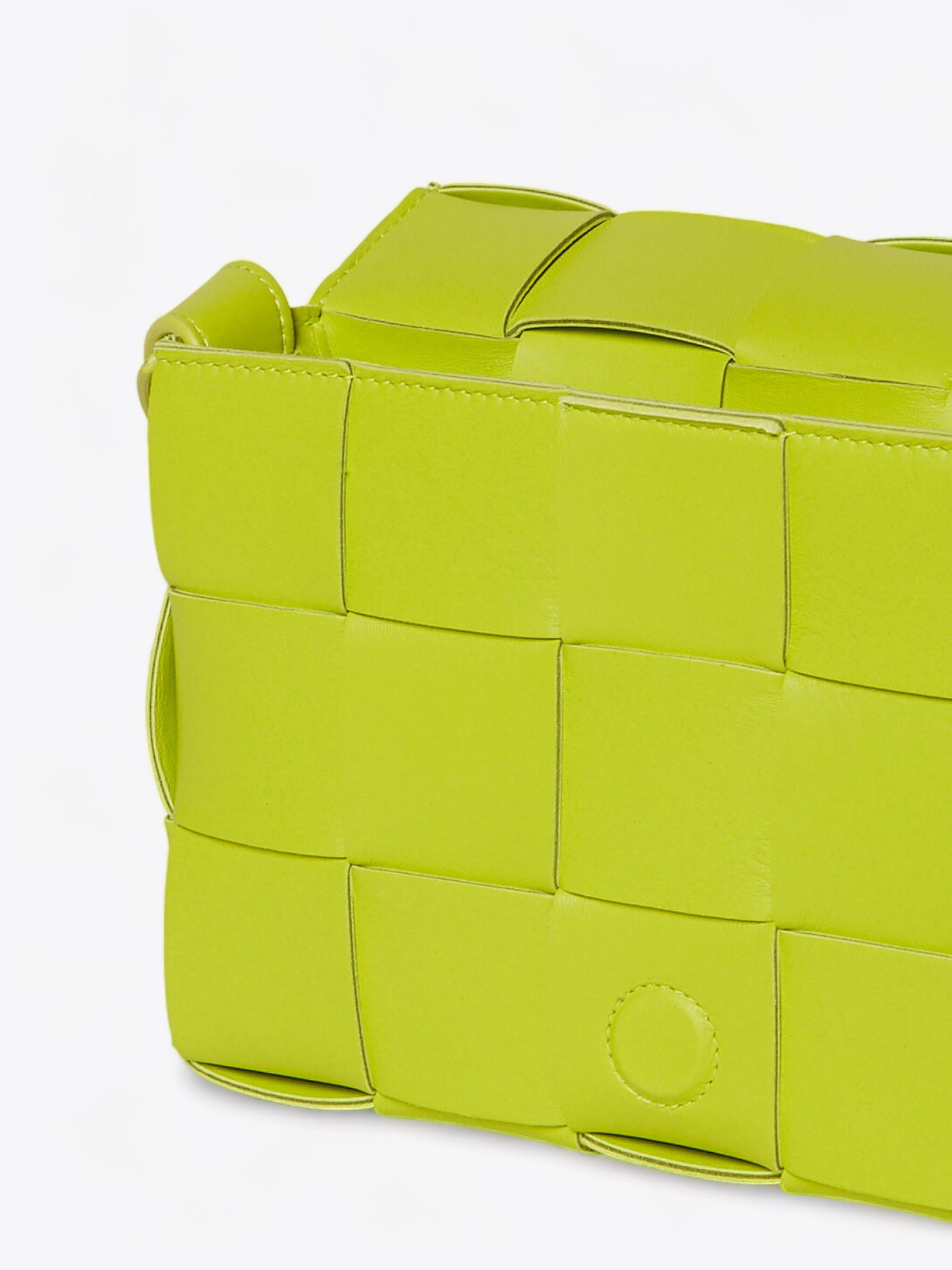 La couleur acidulée de ce sac Cassette apporte une touche de vivacité à votre garde-robe, faisant de lui l’accessoire idéal pour rehausser une tenue monochrome ou compléter un look coloré. Sa forme carrée et compacte offre une polyvalence de porté, que ce soit en bandoulière pour une allure décontractée chic ou en pochette pour une élégance épurée lors d’une soirée.