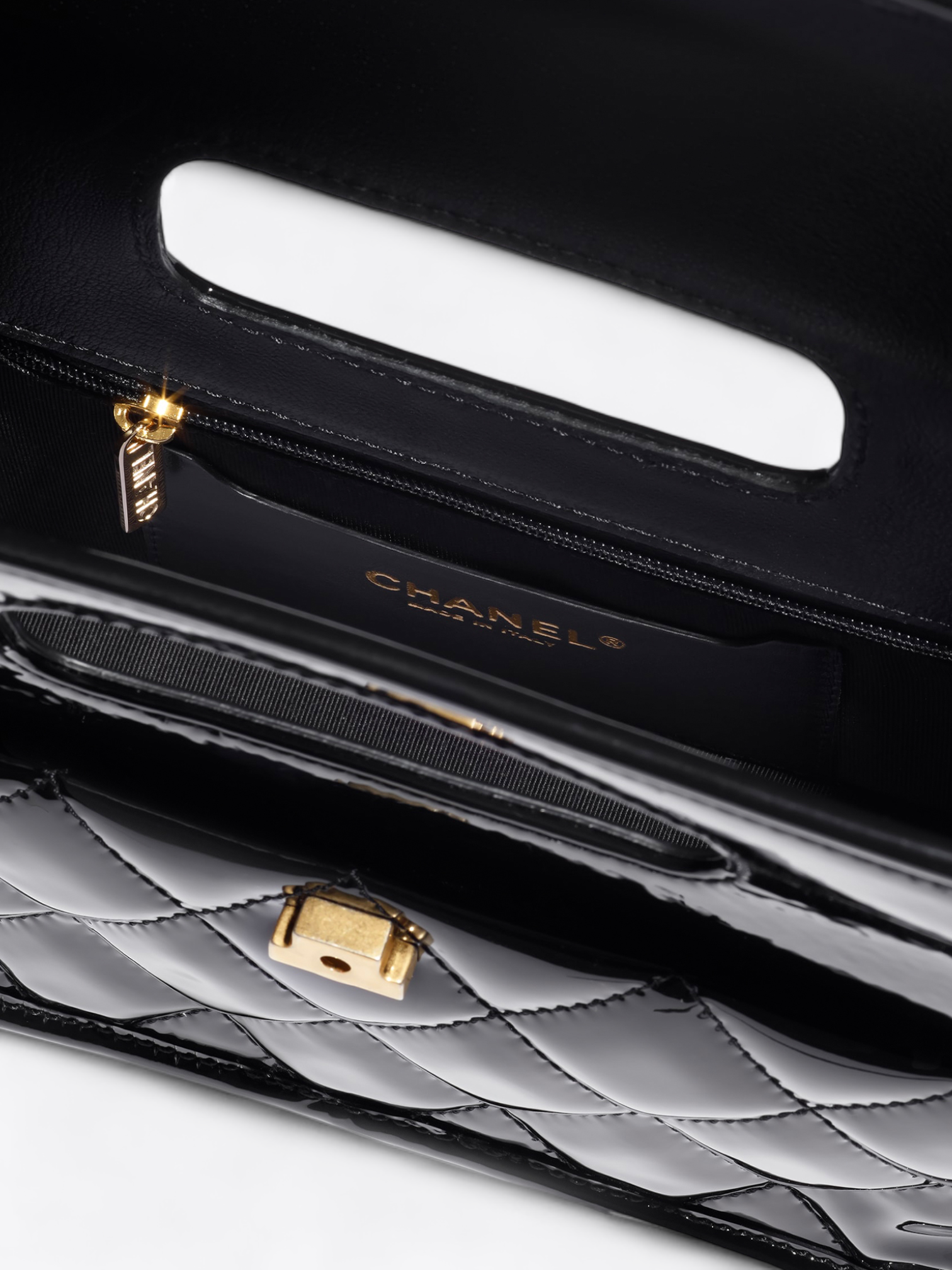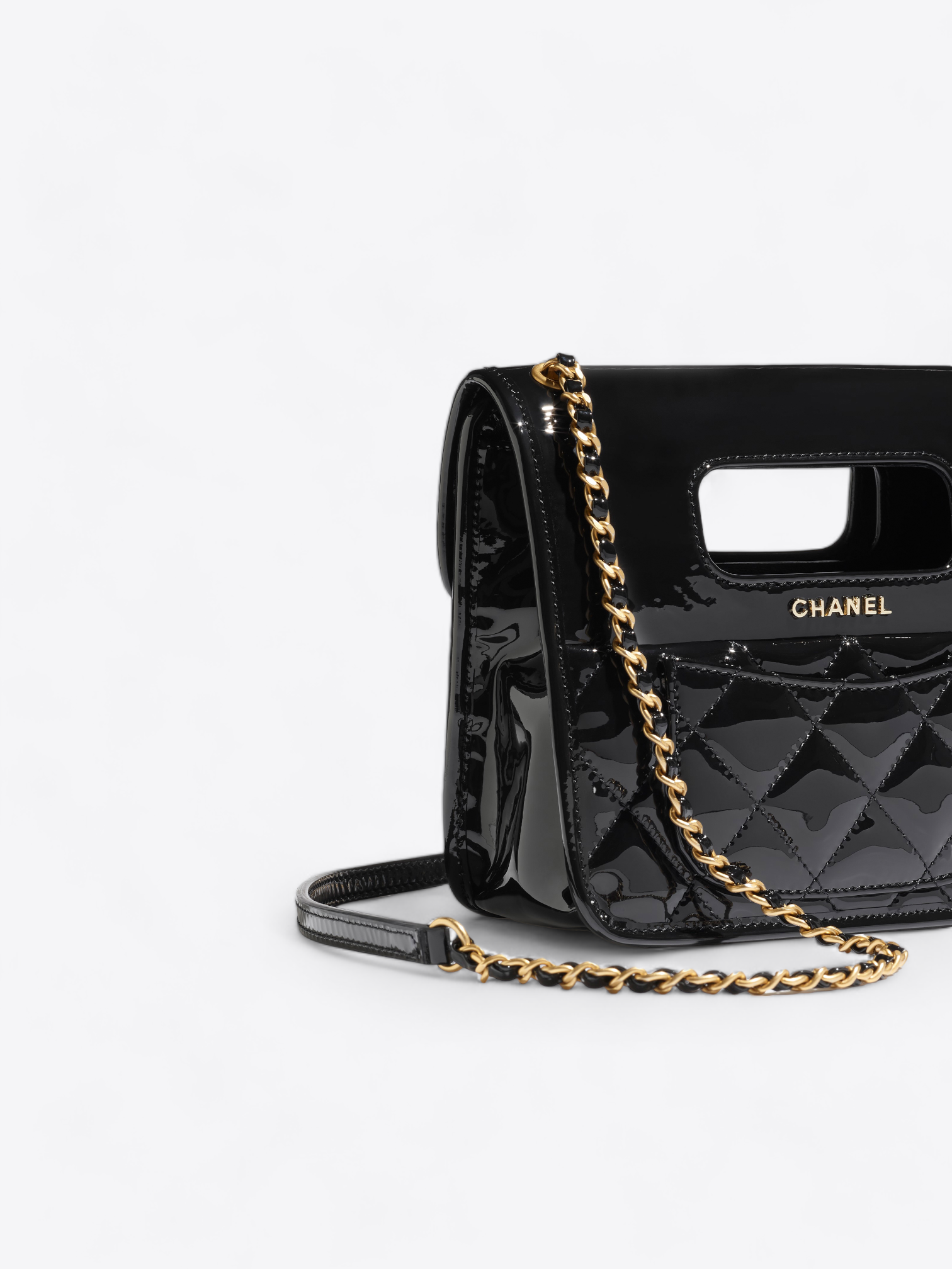 Audace et sophistication : le sac Chanel Mini Flap avec poignée supérieure en version laquée noire vous attend sur welPop !