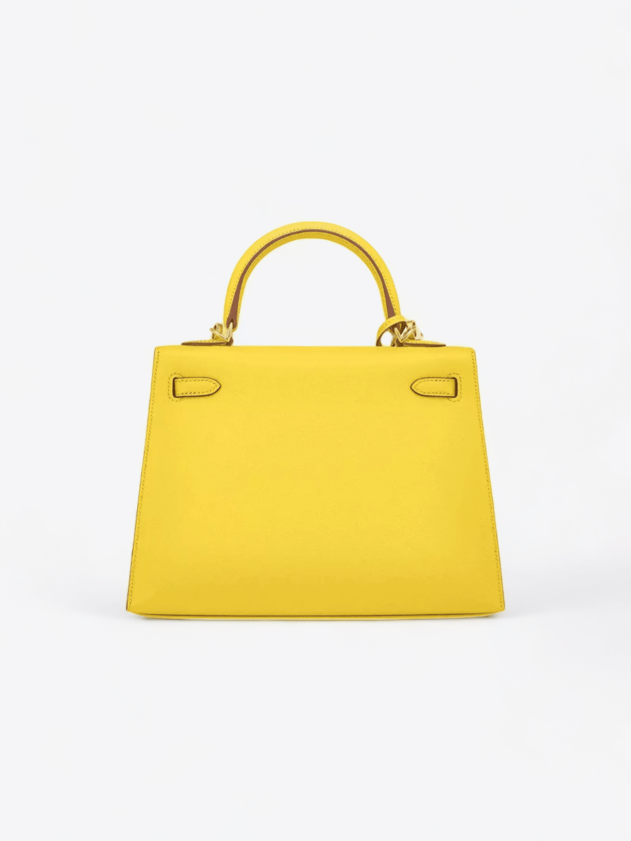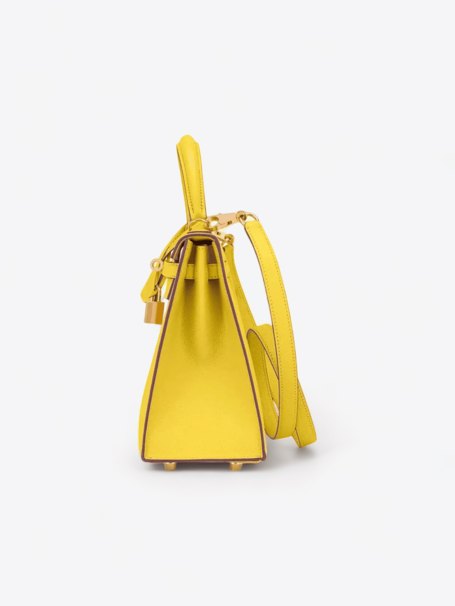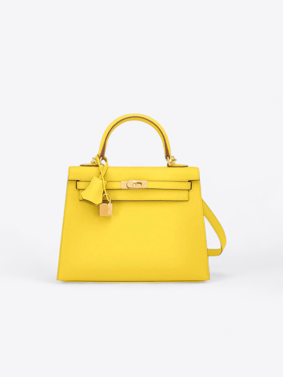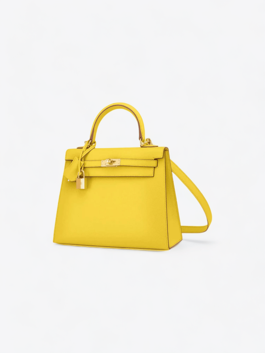 Le sac Hermès Kelly 25 en cuir Epsom Jaune Poussin est une véritable œuvre d’art de la maroquinerie de luxe, incarnant l’élégance et le raffinement. Sa couleur jaune poussin, vibrante et lumineuse, évoque la joie et la fraîcheur des premiers jours de printemps, apportant une touche de gaieté à n’importe quelle tenue. La texture du cuir Epsom est reconnue pour sa résistance et sa capacité à maintenir la forme structurée du sac, tout en offrant un grain fin et une finition mate qui résiste aux éraflures, préservant ainsi la beauté du sac au fil du temps.