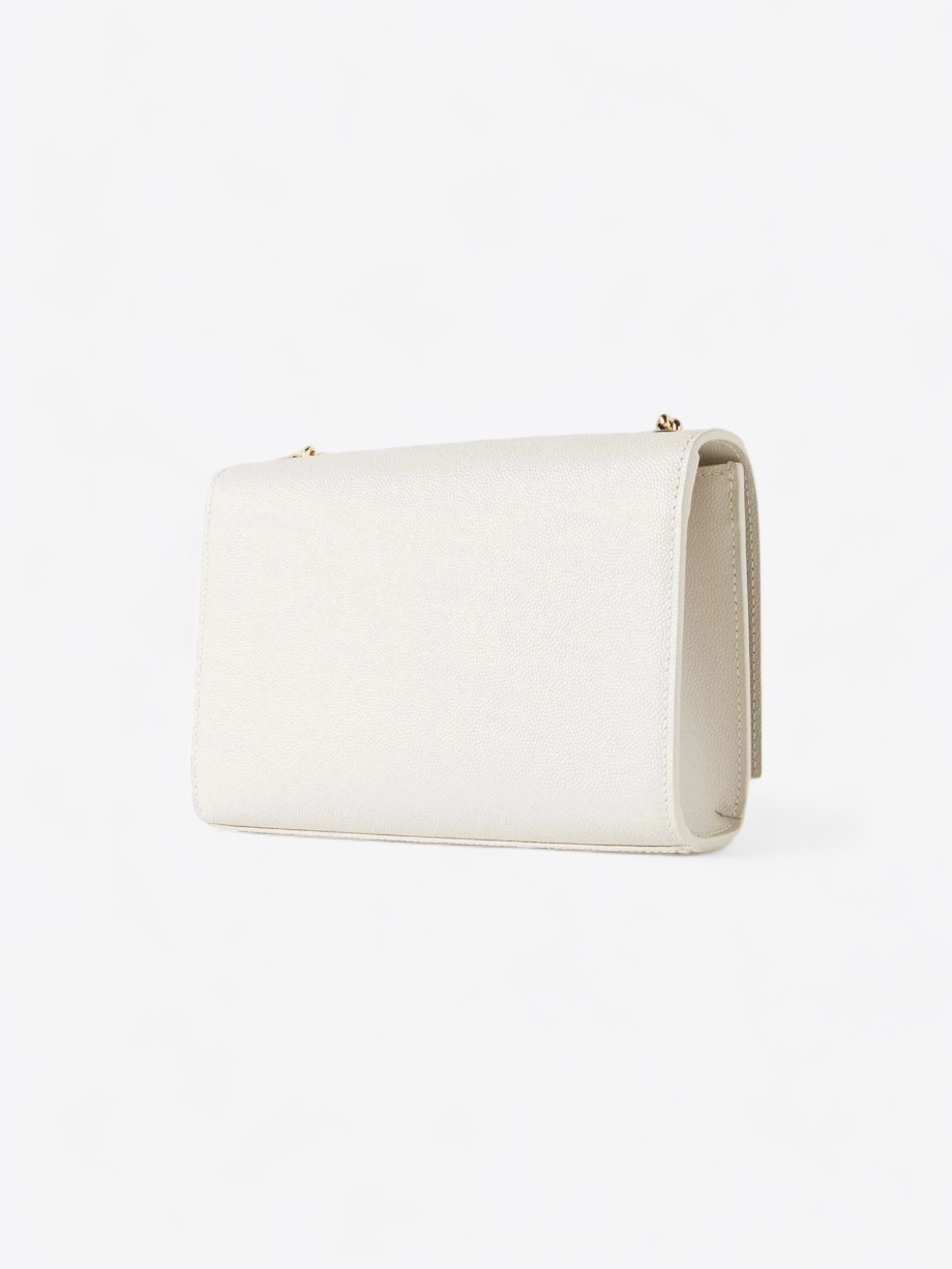 Le sac Monogramme Kate de Saint Laurent, une pièce maîtresse de notre collection de location de luxe chez welPop, est l’incarnation même de l’élégance à la française mêlée à l’audace italienne. Conçu avec un savoir-faire inégalé, ce sac est fabriqué en Italie à partir d’un cuir texturé blanc cassé qui évoque la pureté et la sophistication. Sa surface délicate révèle une texture riche qui invite au toucher, tandis que sa teinte neutre en fait un caméléon de la mode, capable de s’harmoniser avec une multitude de tenues et de palettes de couleurs.